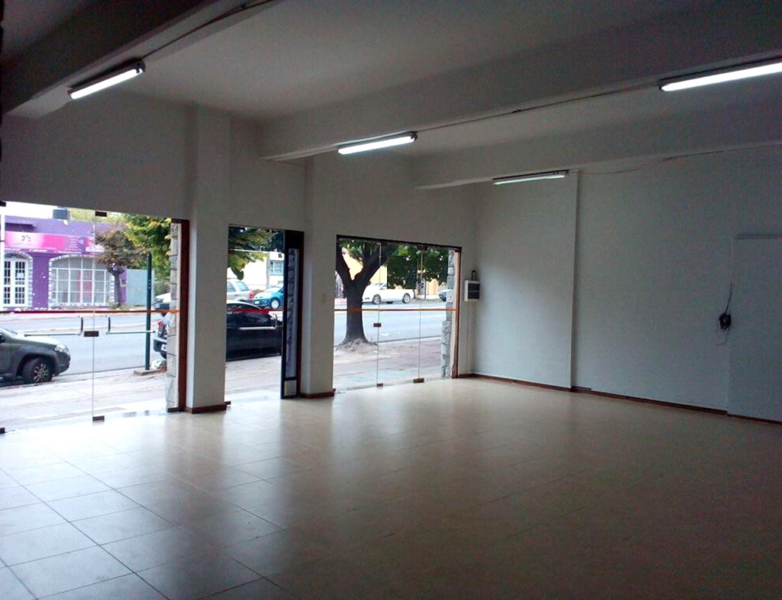 Salón comercial principal de 110 m2, cuenta con depósito de 60 m2 (apto vivienda), dos baños completos, cocina y patio interno de 40 m2. Frente de blindex.